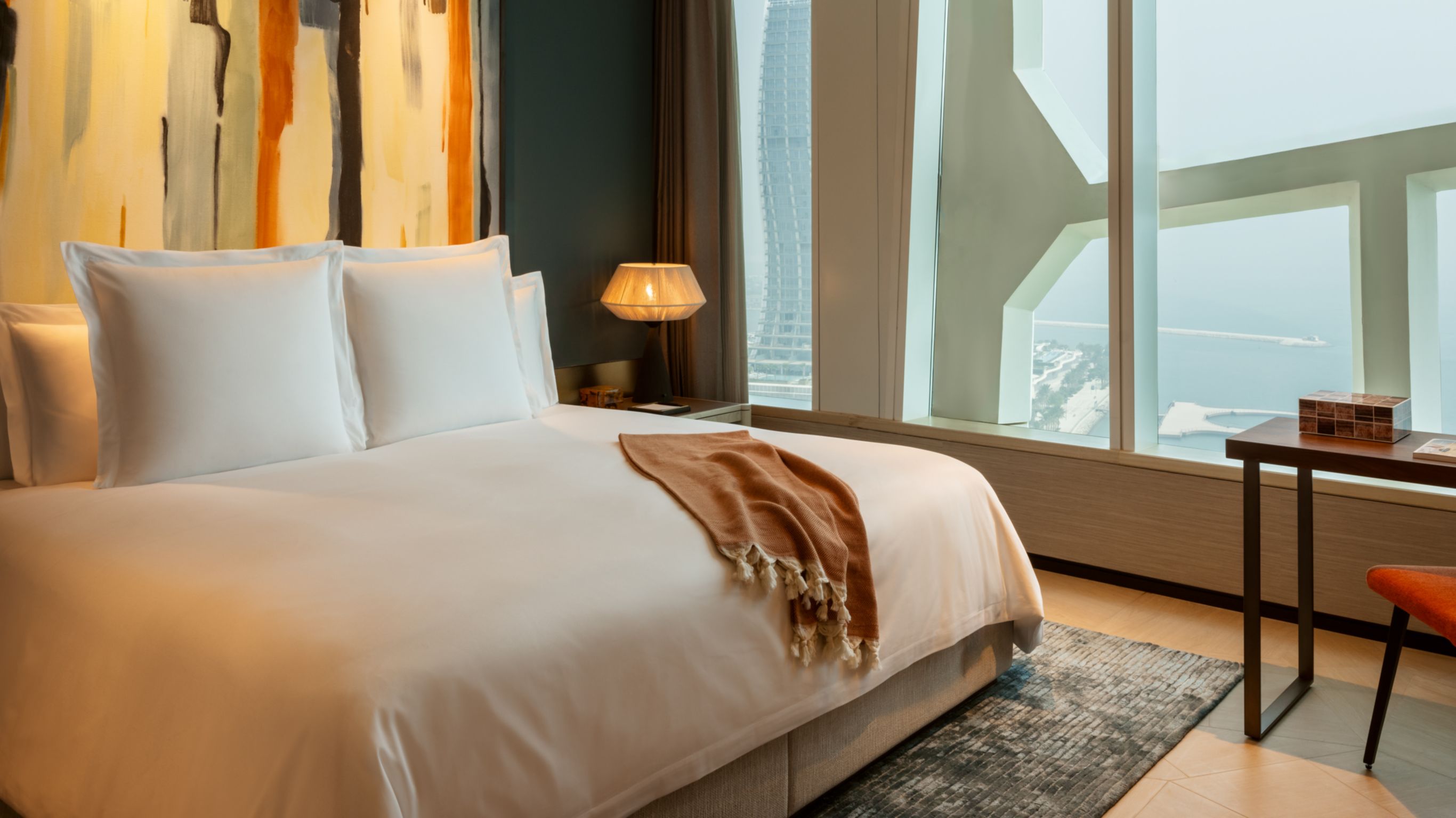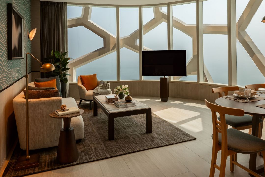 Our generously sized One-Bedroom Residences cocoon guests in refined interiors, elegant finishes, and spectacular views of Doha. The living and dining area offers ample room for four; the open kitchen is equipped with top-of-the-line appliances; and the king bedroom enjoys an ensuite bath with dual vanities, rain shower, and soaking tub. The total living space covers 81 sq.m. (872 sq.ft.).