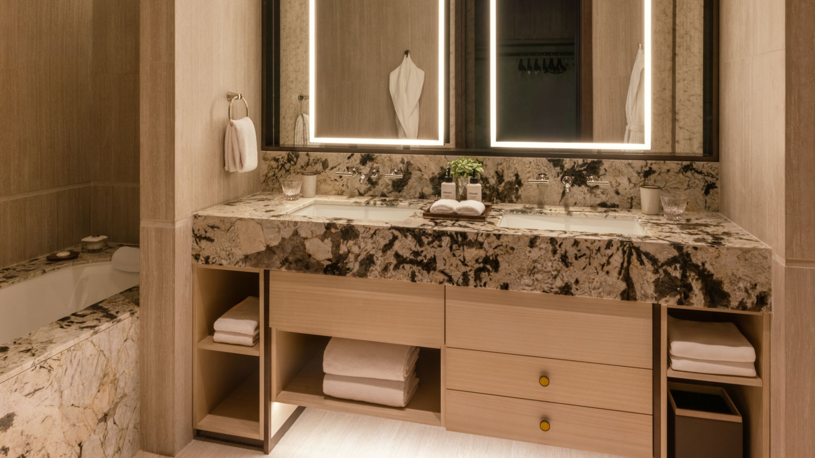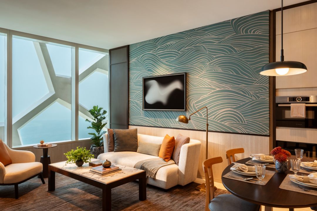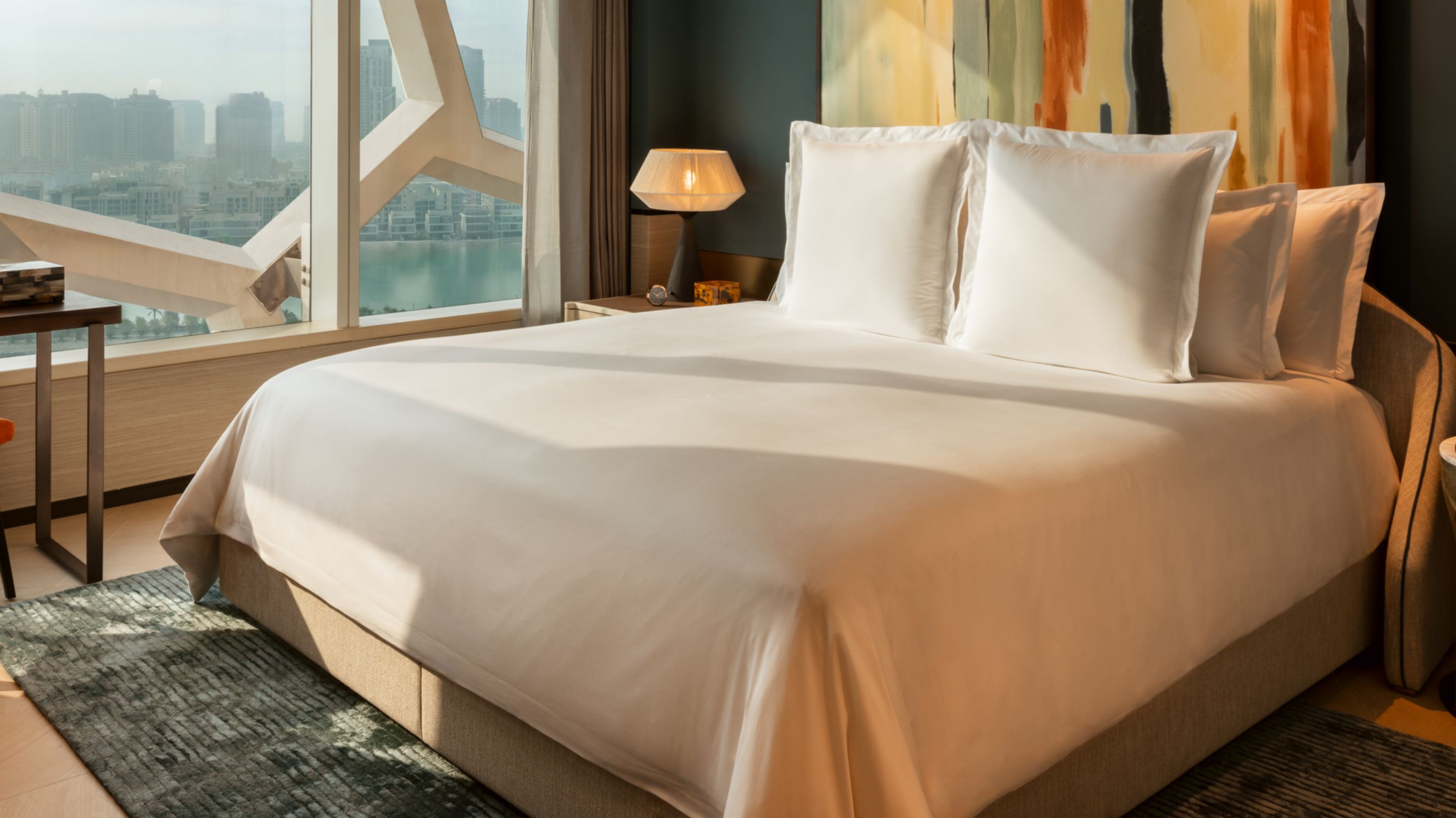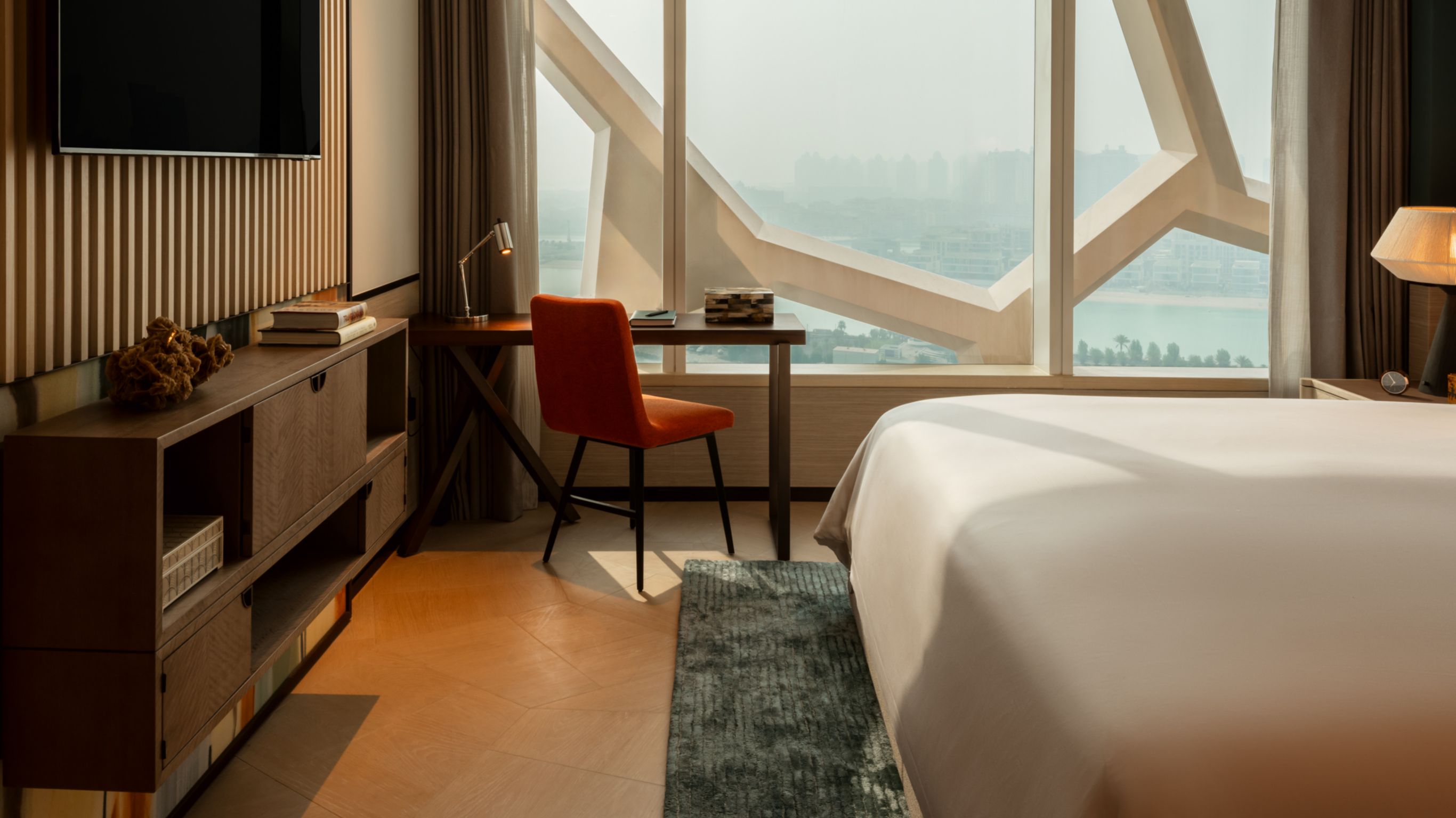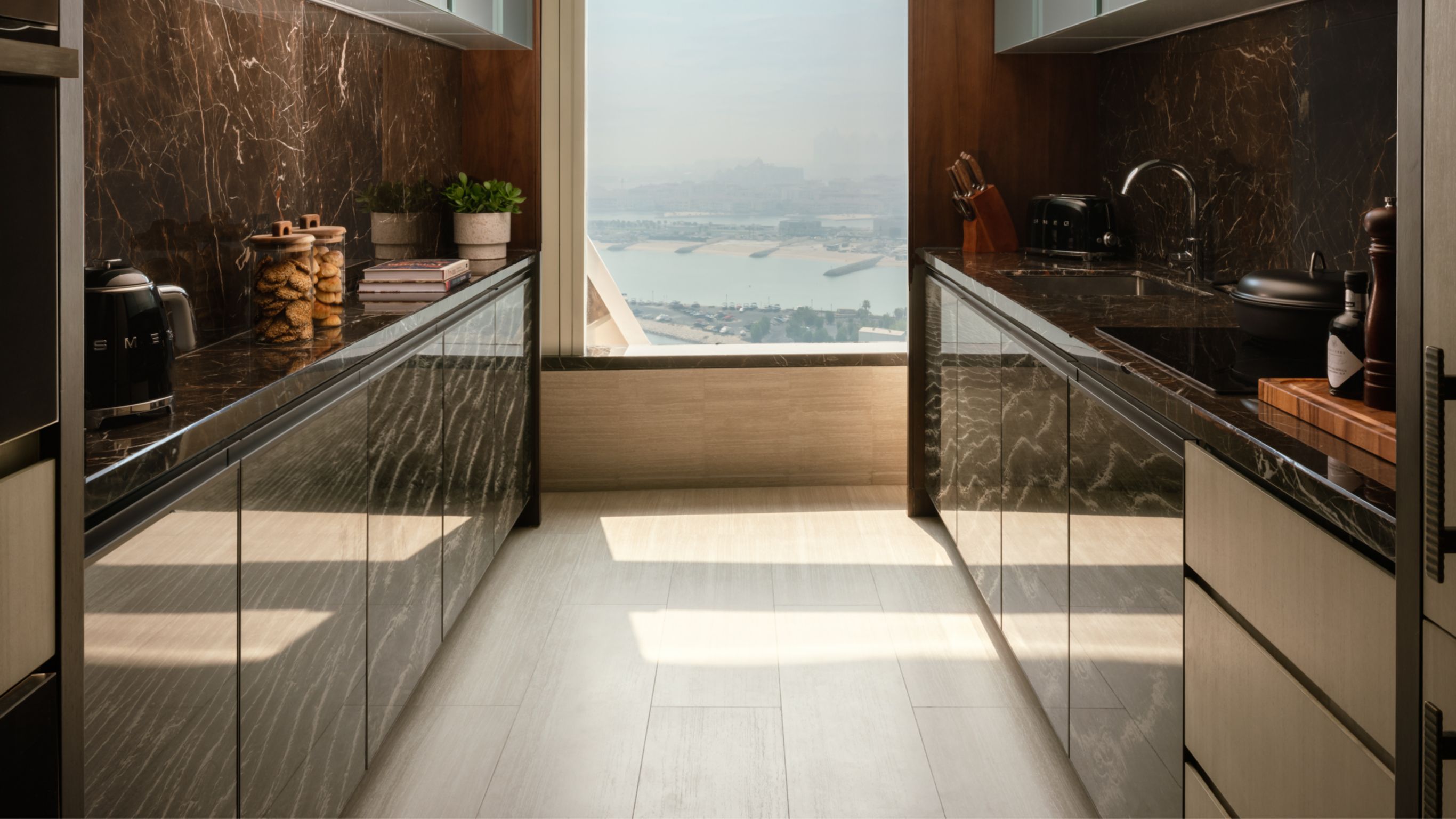 A luxurious home-away-from-home, our Two-Bedroom Residences blend sophisticated design with stunning views and contemporary comforts. The total of 124 sq.m. (1,335 sq.ft.) includes a large living area that allows guests to savor the vistas of the Arabian Gulf or Lusail City, as well as a dining table seating six. The galley-style kitchen is equipped with top-of-the-line appliances. Both bedrooms feature walk-in wardrobes and sumptuous ensuite bathrooms. Two-Bedroom Residences are available in king + king or king + twin configurations.