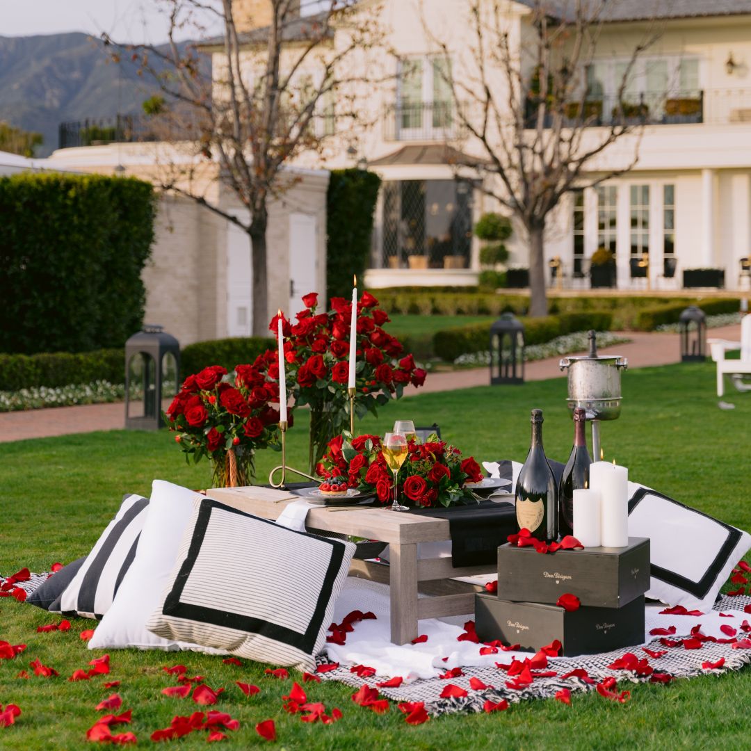 With multiple green lush lawns available, picnics can be hosted in semi-private to more public outdoor settings. Standard picnic set ups include decor and rose petals, with customization options and upgrades available.